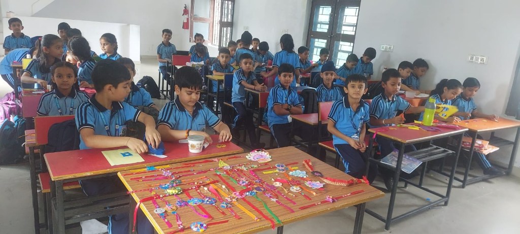 The classrooms came alive with a splash of colours as young minds designed unique rakhis, blending traditional charm with modern creativity. From intricate patterns to playful themes, each rakhi reflected the love, care, and creativity of our students.
